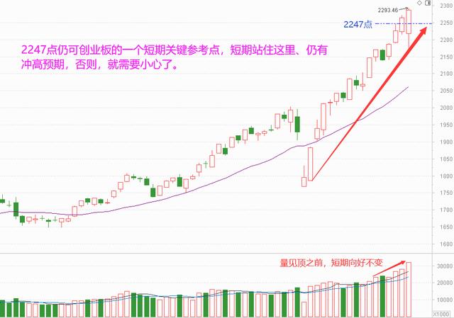而对于创业板,周二的跳水、算是一次黄牌警告,从右侧的角度,探出的低点2171点、可作为创业板这波的生命线。个人觉得,2247点仍可作为创业板短期的一个关键参考点,短期站住这里、还有走高预期,若再次失守、就需要再小心了。